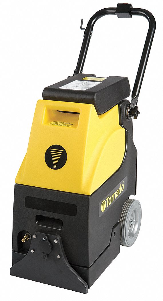 Tornado 12 gallon self contained extractor 12 gallon solution tank 14 gallon recovery tank 100 lbs 100 psi solution pump 112 cfm airflow rate 117 water lift 2 hp.